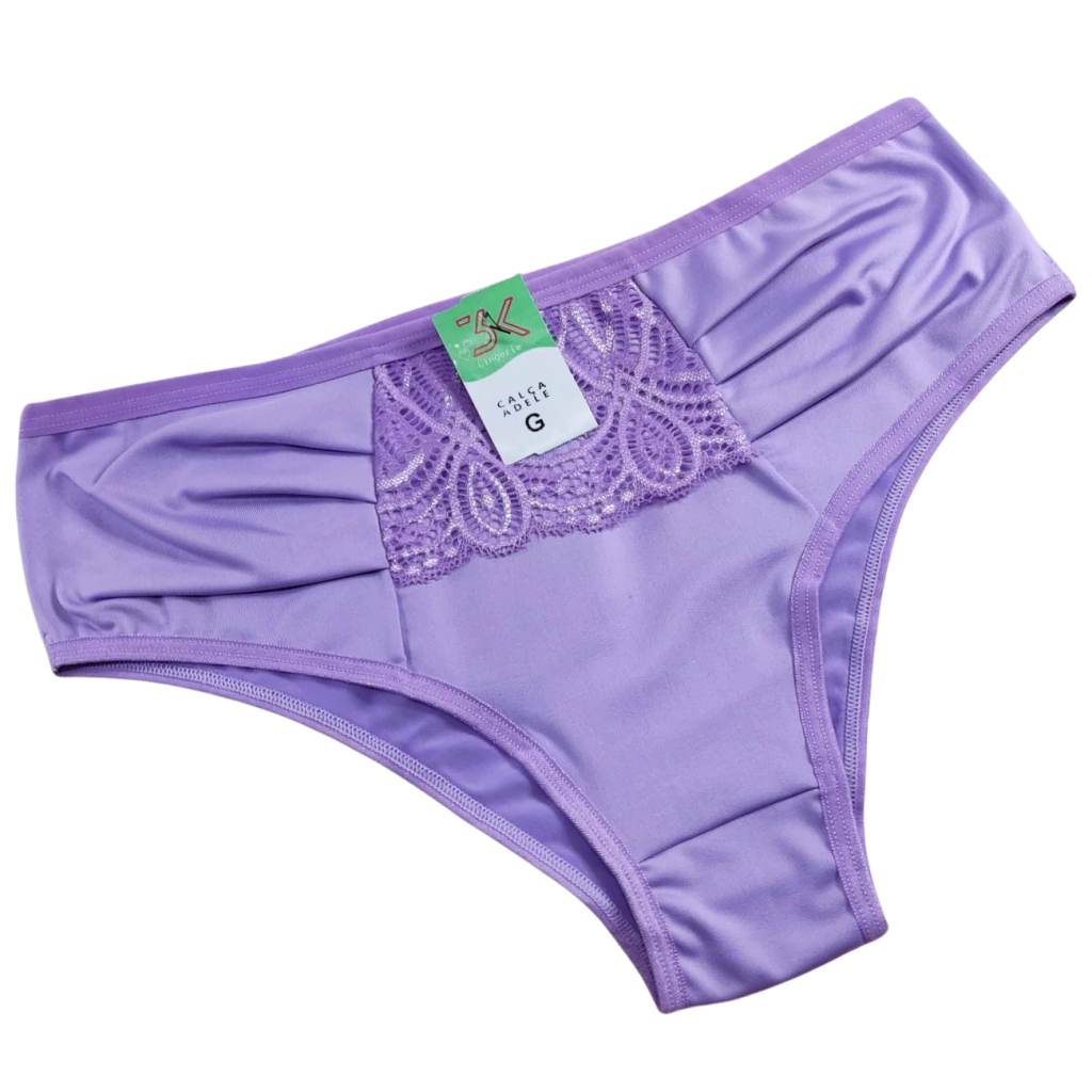 Calcinha de microfibra poliéster com detalhe em renda poliamida na frente , detalhes de prega na lateral dando um charme a mais na peça, viés largo na cintura - forro de algodão.